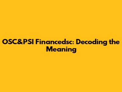 Hey guys! Ever stumbled upon the term "OSC&PSI financedsc" and felt like you needed a secret decoder ring? You're not alone! It sounds super technical, but let's break it down in a way that's easy to understand. We're going to dive deep into what each of these acronyms means and how they all fit together. Think of this as your friendly guide to navigating the sometimes-confusing world of financial acronyms. So, grab a cup of coffee (or tea!), and let's get started!