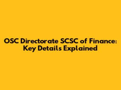 OSC Directorate SCSC Of Finance: Key Details Explained