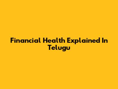 Financial Health Explained In Telugu