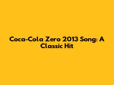 Coca-Cola Zero 2013 Song: A Classic Hit