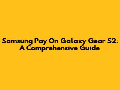 Samsung Pay On Galaxy Gear S2: A Comprehensive Guide