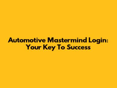 Automotive Mastermind Login: Your Key To Success