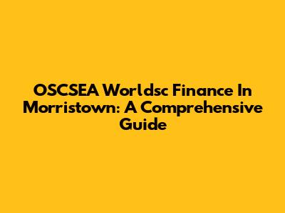 OSCSEA Worldsc Finance In Morristown: A Comprehensive Guide