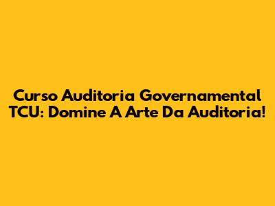 Curso Auditoria Governamental TCU: Domine A Arte Da Auditoria!