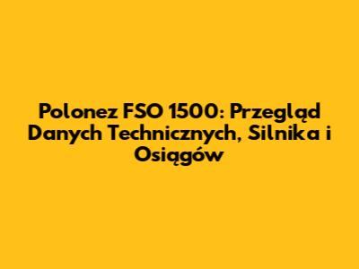 Polonez FSO 1500: Dane Techniczne – Silnik i Osiągi