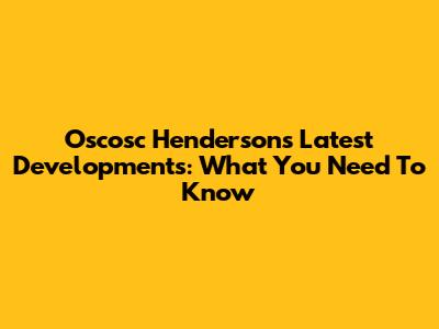 Oscosc Henderson's Latest Developments: What You Need To Know