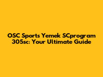 OSC Sports Yemek SCprogram 305sc: Your Ultimate Guide