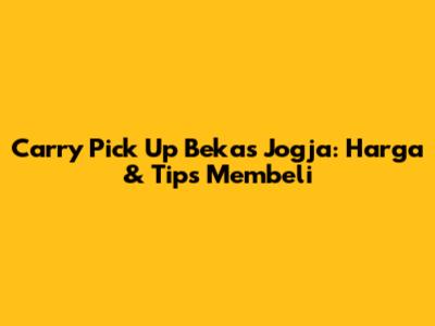 Carry Pick Up Bekas Jogja: Harga & Tips Membeli