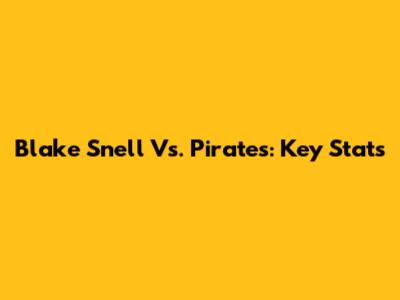 Blake Snell Vs. Pirates: Key Stats