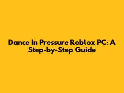 Dance In Pressure Roblox PC: A Step-by-Step Guide