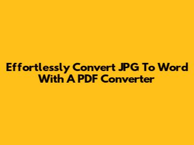 Effortlessly Convert JPG To Word With A PDF Converter