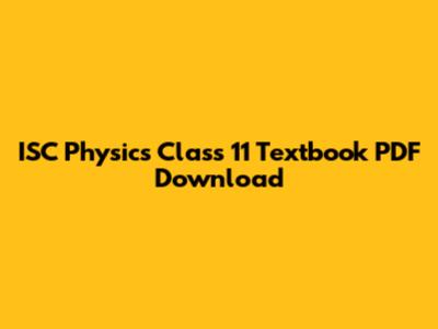ISC Physics Class 11 Textbook PDF Download