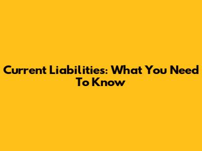 Current Liabilities: What You Need To Know