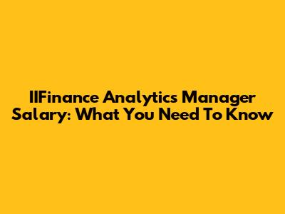 IIFinance Analytics Manager Salary: What You Need To Know