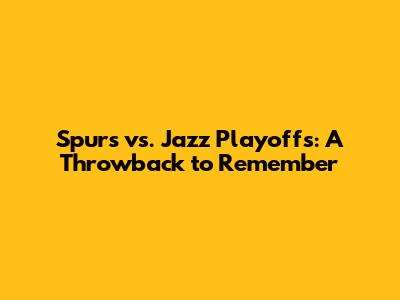 Spurs Vs. Jazz Playoffs: A Throwback To Remember