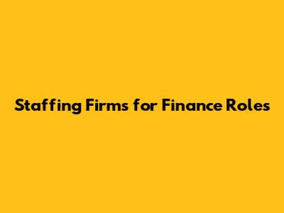 Staffing Firms For Finance Roles