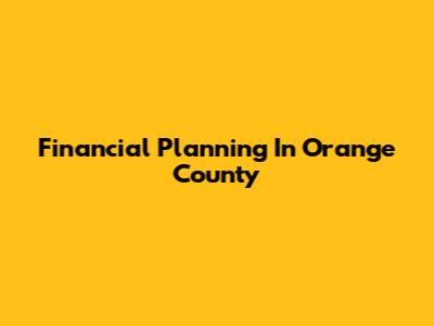 Financial Planning In Orange County