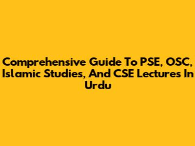 Comprehensive Guide To PSE, OSC, Islamic Studies, And CSE Lectures In Urdu
