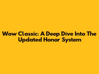 Wow Classic: A Deep Dive Into The Updated Honor System