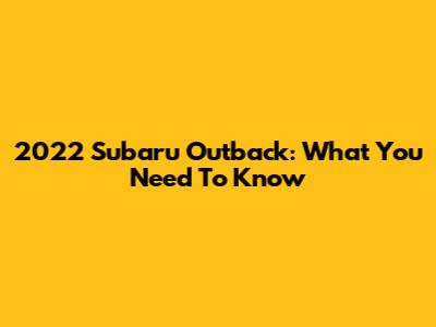 2022 Subaru Outback: What You Need To Know