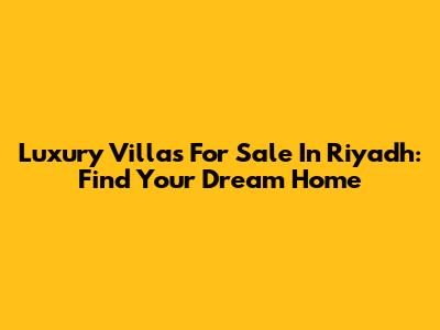 Luxury Villas For Sale In Riyadh: Find Your Dream Home