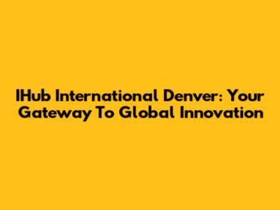 IHub International Denver: Your Gateway To Global Innovation