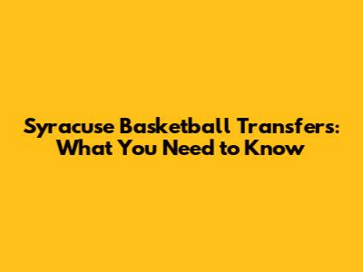 Syracuse Basketball Transfers: What You Need To Know