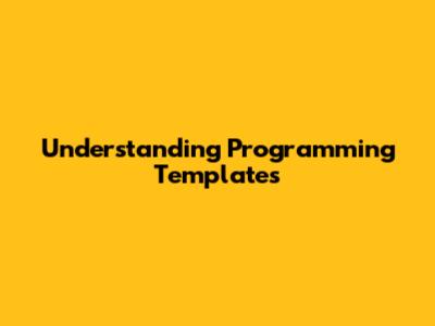 Understanding Programming Templates