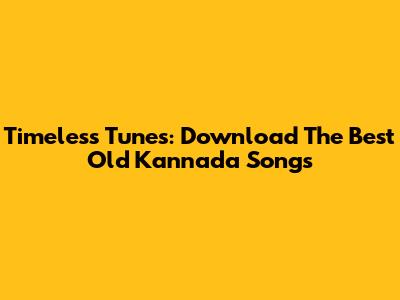 Timeless Tunes: Download The Best Old Kannada Songs