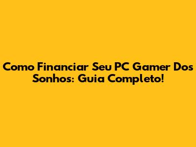 Como Financiar Seu PC Gamer Dos Sonhos: Guia Completo!