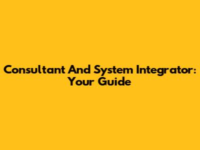 Consultant And System Integrator: Your Guide