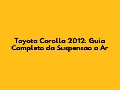 Toyota Corolla 2012: Um dos carros mais icônicos e confiáveis do mercado automotivo, o Corolla sempre foi sinônimo de durabilidade e bom desempenho. Mas, e se você pudesse elevar ainda mais a experiência de dirigir esse clássico? A suspensão a ar oferece exatamente isso. Neste guia completo, vamos mergulhar no universo da suspensão a ar para o Toyota Corolla 2012, explorando seus benefícios, componentes, instalação, manutenção e dicas para garantir o melhor desempenho e conforto. Se você é um entusiasta automotivo ou apenas busca uma maneira de aprimorar a dirigibilidade do seu Corolla, este artigo é para você.