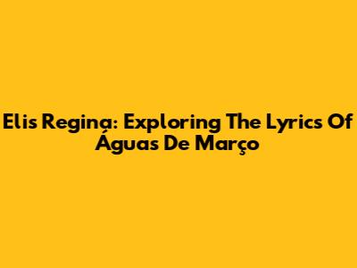 Elis Regina: Exploring The Lyrics Of 'Águas De Março'