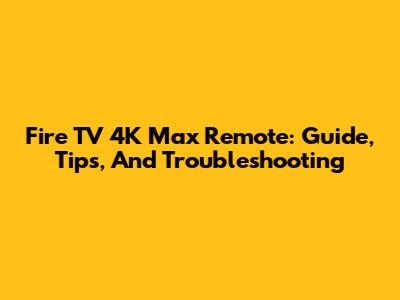 Fire TV 4K Max Remote: Guide, Tips, And Troubleshooting