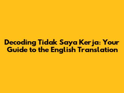Unveiling The English Translation Of 'Tidak Saya Kerja'