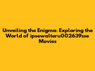 Unveiling The Enigma: Exploring The World Of Ipsewalteru002639sse Movies