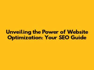Unveiling The Power Of Website Optimization: Your SEO Guide