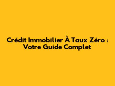 Crédit Immobilier À Taux Zéro : Votre Guide Complet