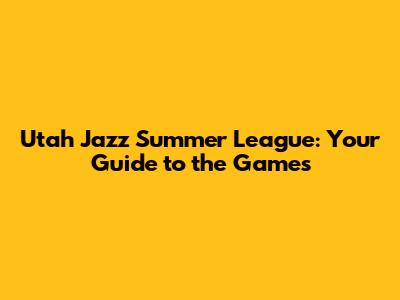 Utah Jazz Summer League Game Schedule: Dates and Locations