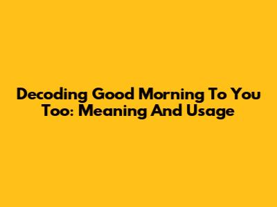 Decoding 'Good Morning To You Too': Meaning And Usage